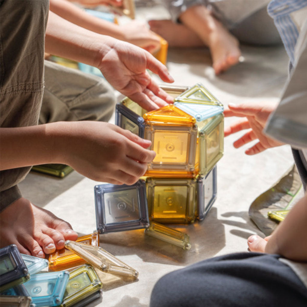 Enjoy loose parts play with this open-ended, magnetic construction set.