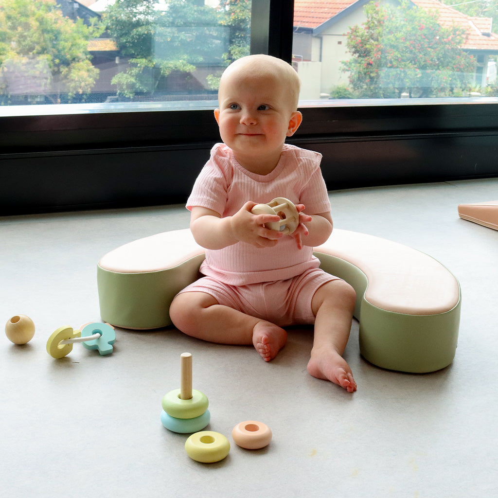 Discover the calming earth tones as babies support themselves while they learn. The versatility of the baby support & play inspires young children's gross motor explorations and imagination.