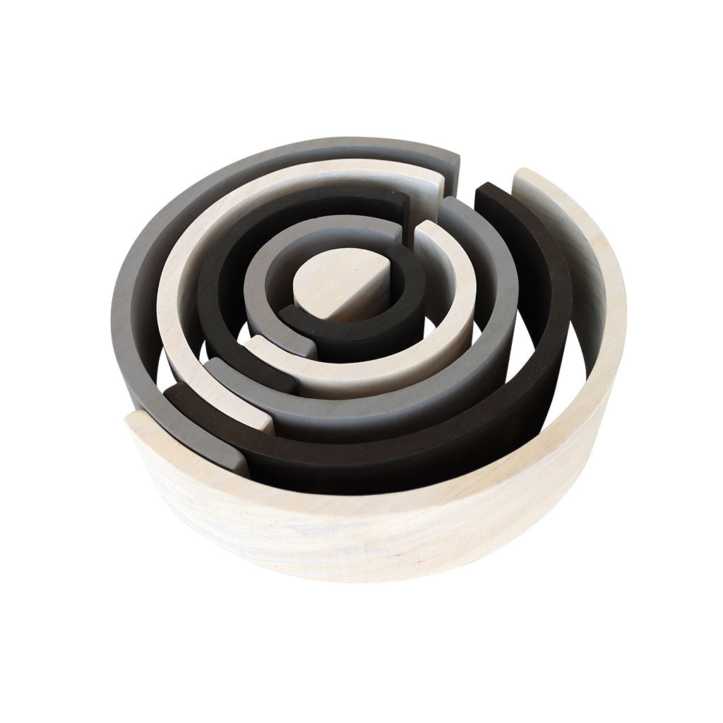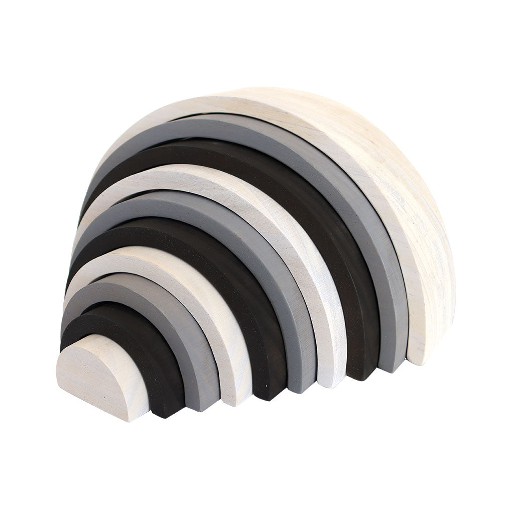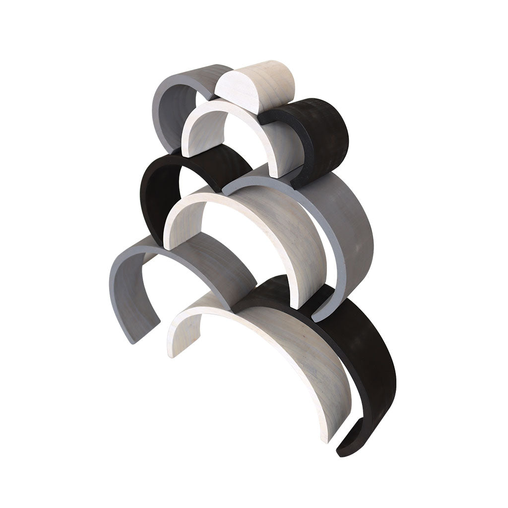 Each stackable arch can be layered to create a complete rainbow or used in imaginative play to create tunnels, bridges, sculptures and more. The Wooden Rainbow is available in Achromatic, Natural, Bright and Pastel colours.