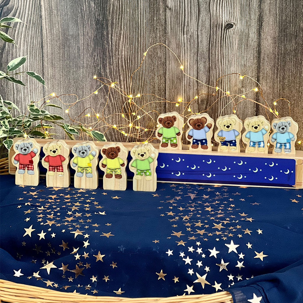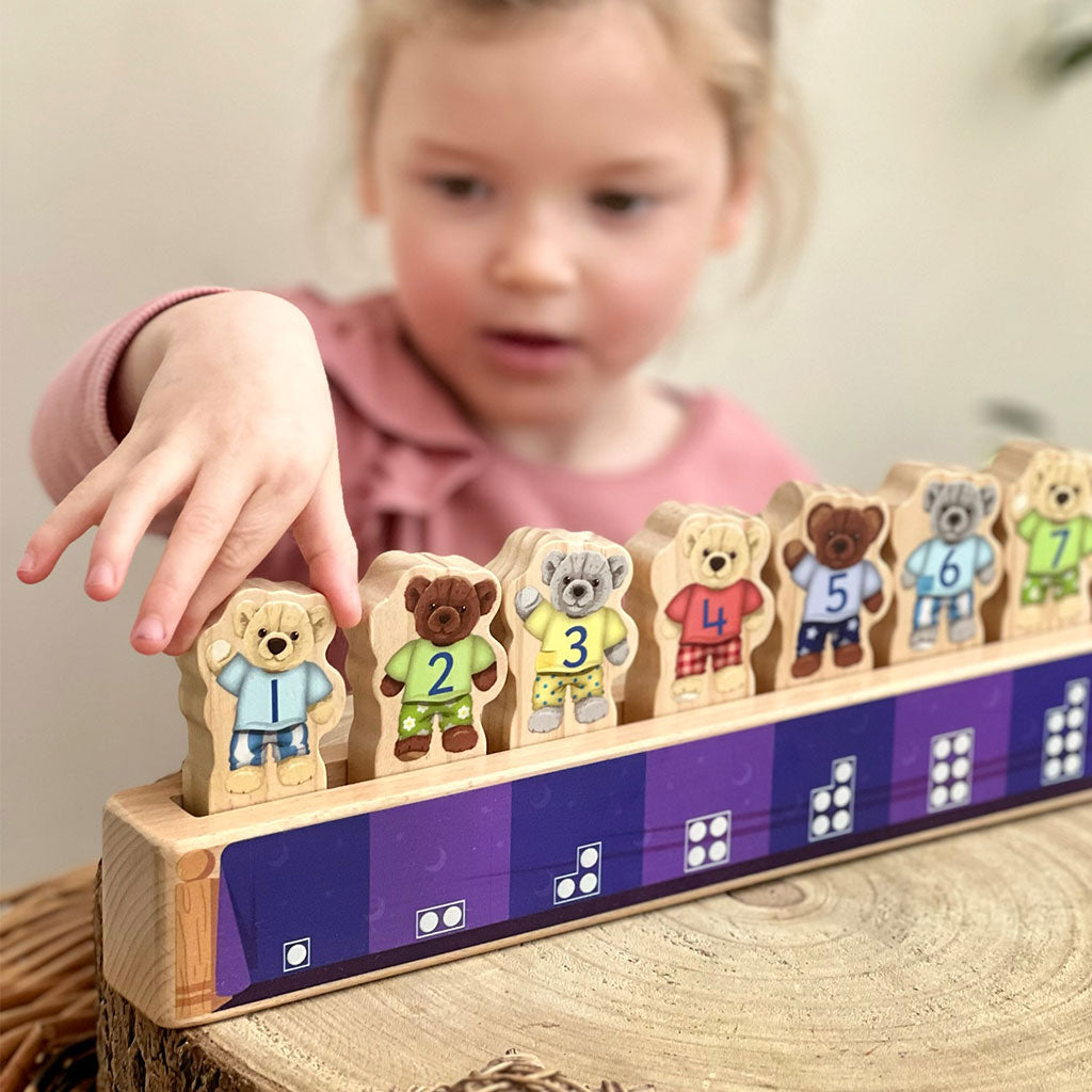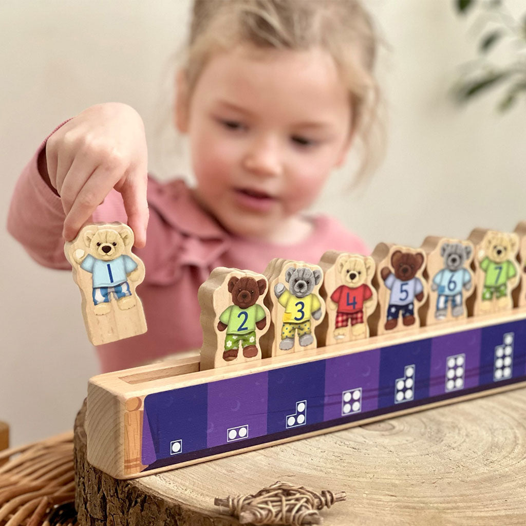 This fun and playful resource is made from FSC-certified beech and pine, making it durable and safe for children aged from 18+ months. This set includes the duvet base and 10 bear characters. As well as a free downloadable activity sheet.