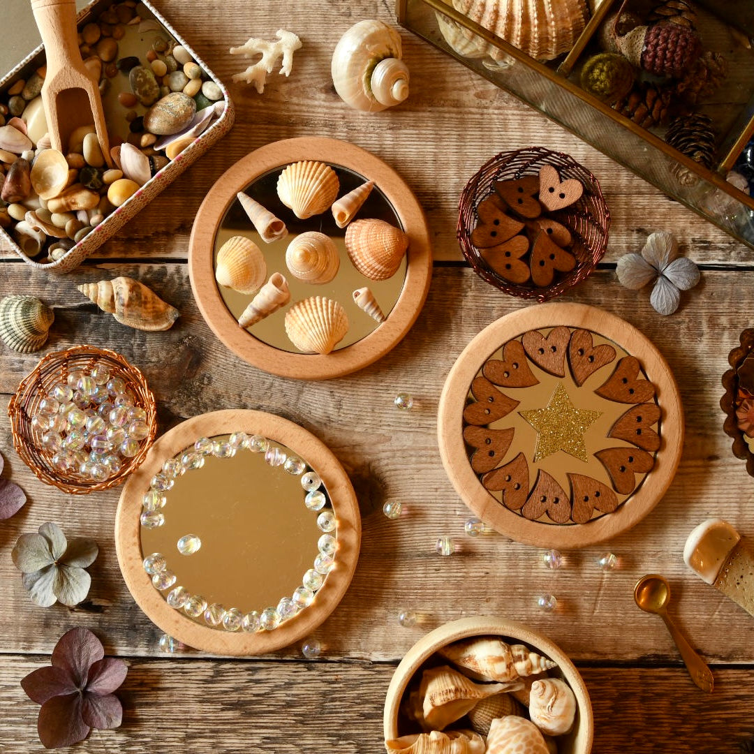 Beautiful crafted round, beech wood mirrors that are perfect for small hands and faces. With the help of the little looking mirrors set and the bag of buddies, children can develop an understanding of emotions and the impact they have on themselves and others.