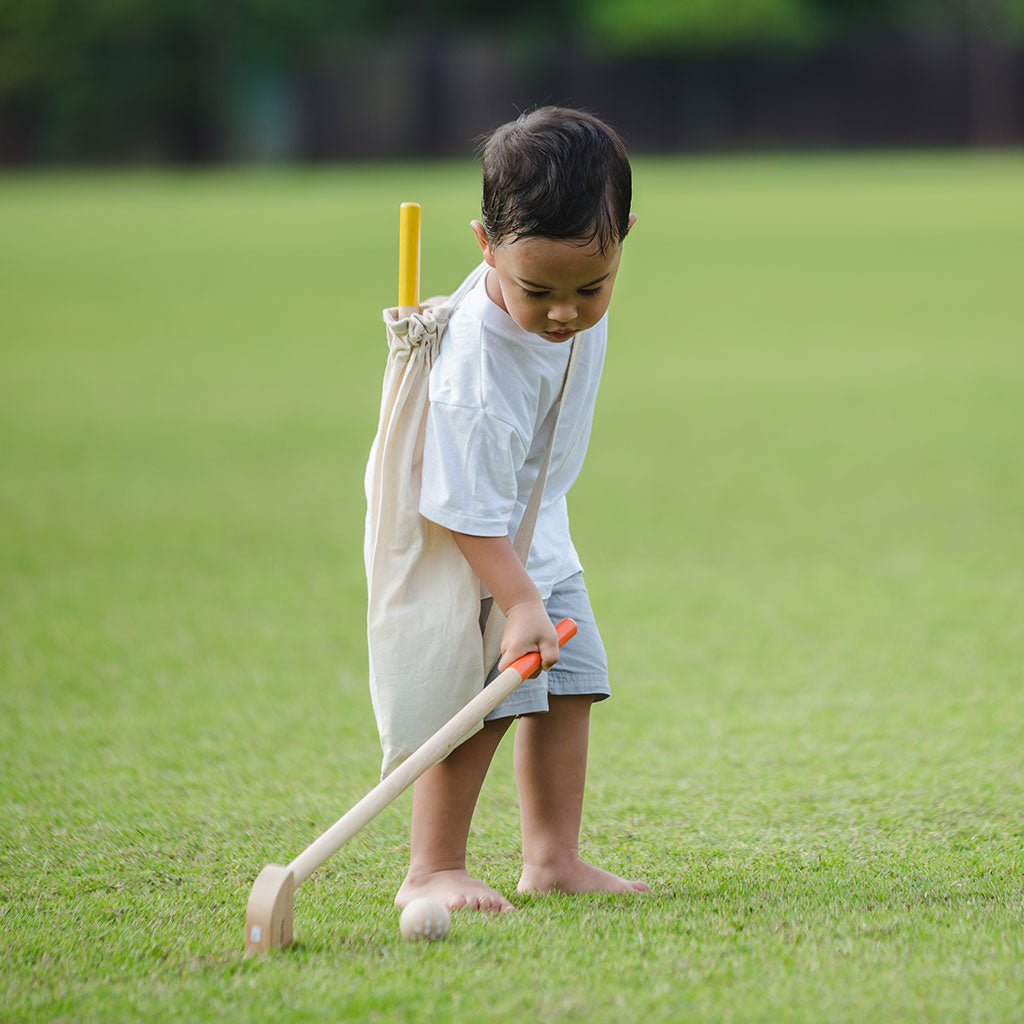 Made in Thailand, the PlanToys Mini Golf Full Set is crafted from chemical-free and sustainable reclaimed rubberwood. It is assembled with formaldehyde-free glue, coloured with organic pigments and water-based dyes ensuring children’s playtime is both eco-friendly and child safe.