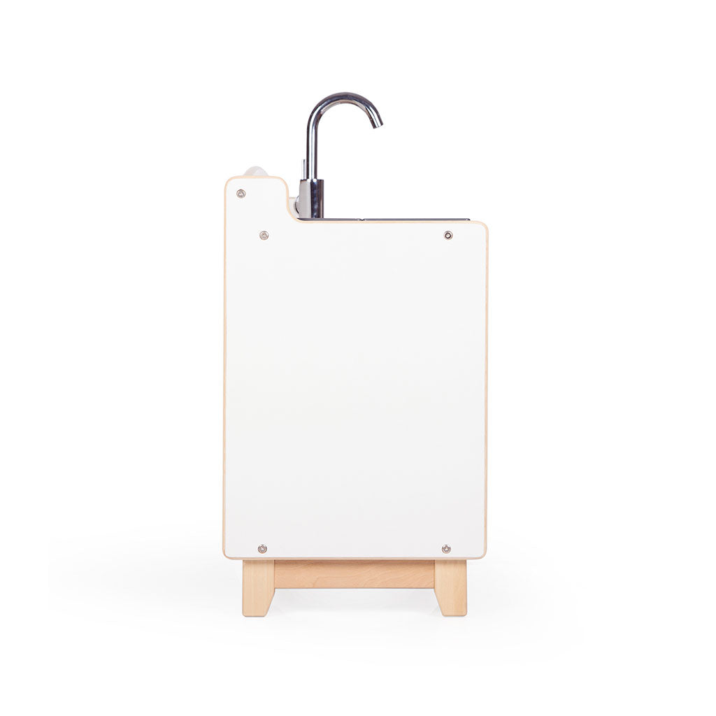 Influenced by Scandinavian kitchen design, the Sense of Place Kitchen features genuine details and a durable, versatile construction of white laminated plywood and solid birch. The farmhouse inspired sink and goose-neck faucet, metal oven racks and butcher-block inspired countertop reinforce the collection’s mission of using sensory-based authentically inspired materials to provide an engaging experience for learners. Measures 102cmW x 41cmD x 78cmH. Accessories featured are not included.