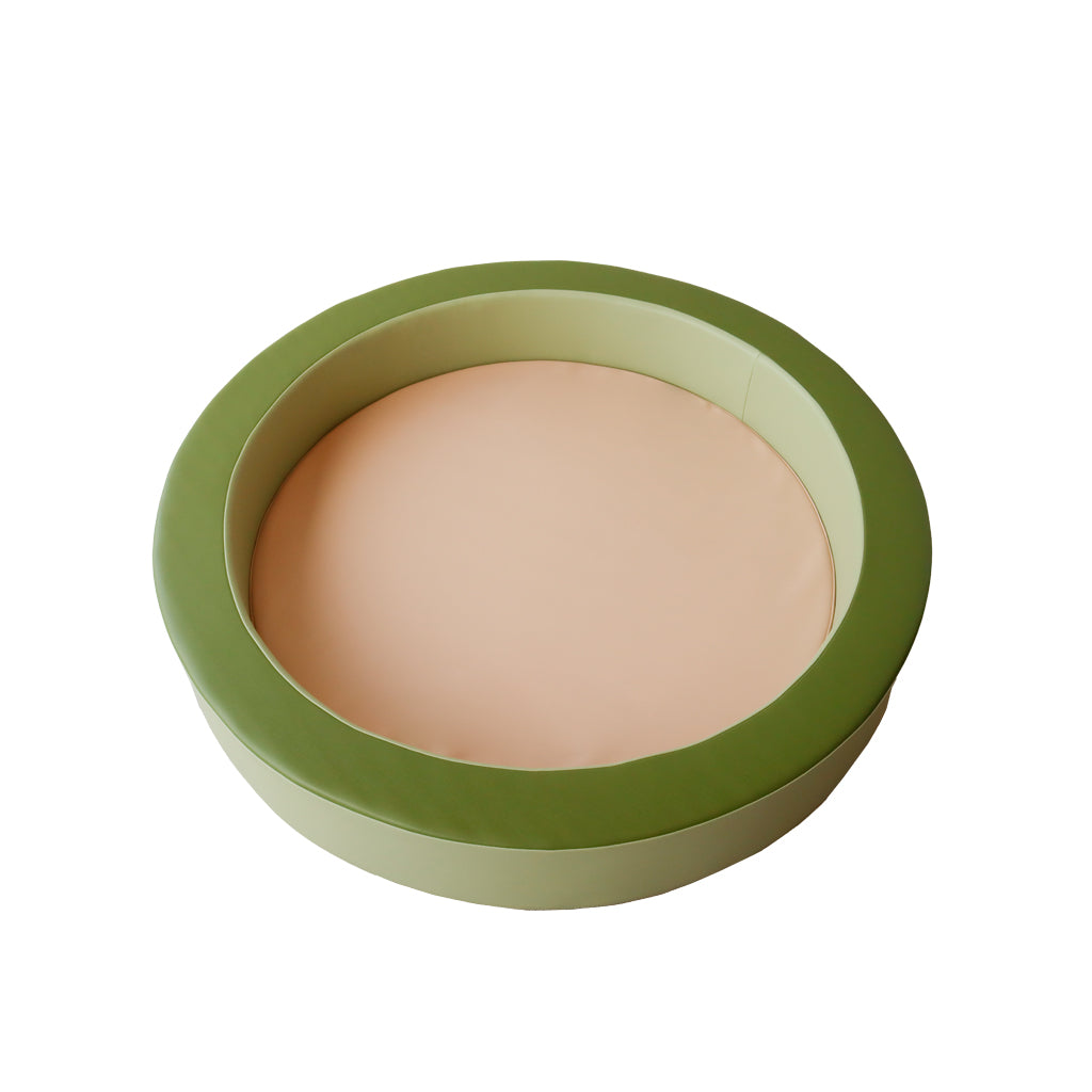 The versatility of the pool inspires children's gross motor explorations and imagination. It can be filled with cushions to create a reading pit, have objects put along the edge to inspire infant children to pull themselves up or filled with balls to inspire large muscle movement.