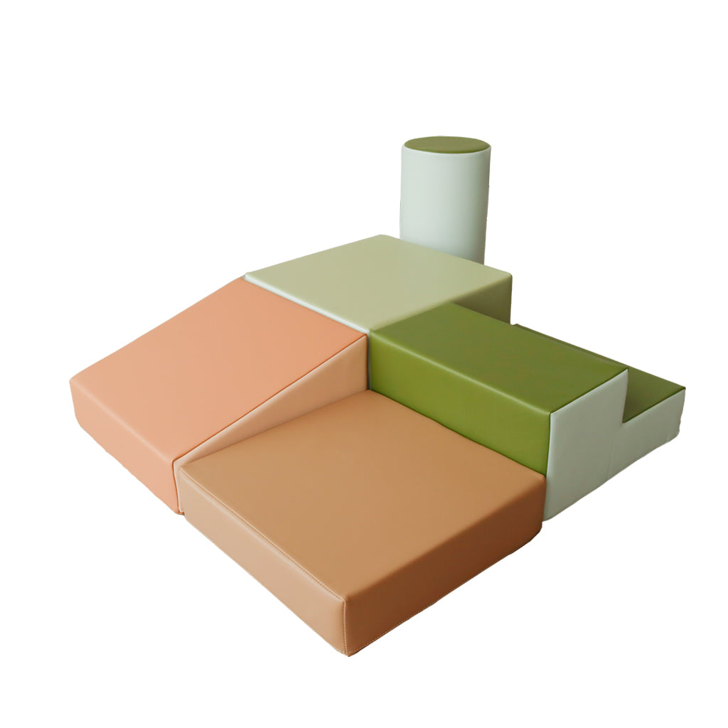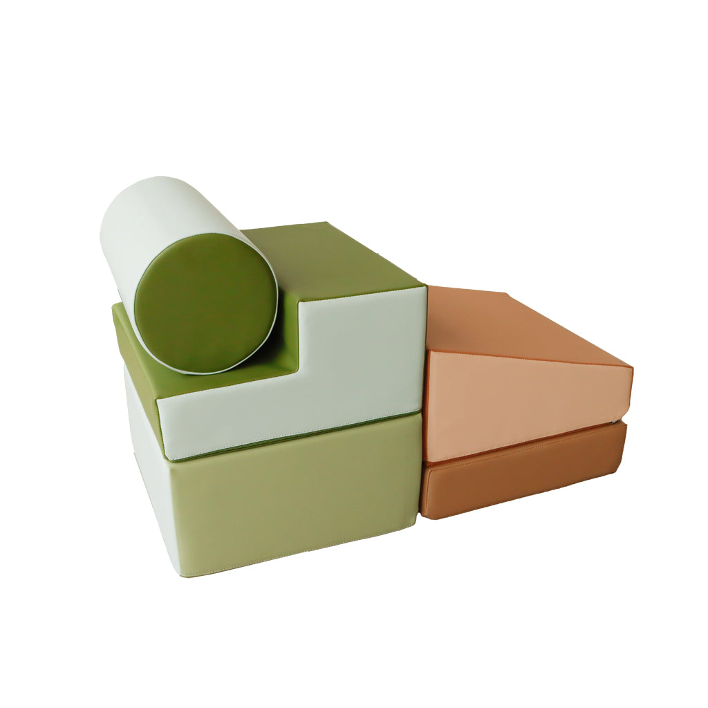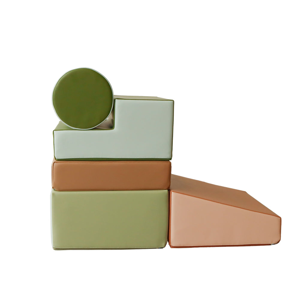 The toddler soft obstacle course encourages open-ended play and provides children with the opportunity to challenge their larger muscles as they become more adventurous in their movements and begin to take risks. The set includes 5 soothing earth tone pieces.