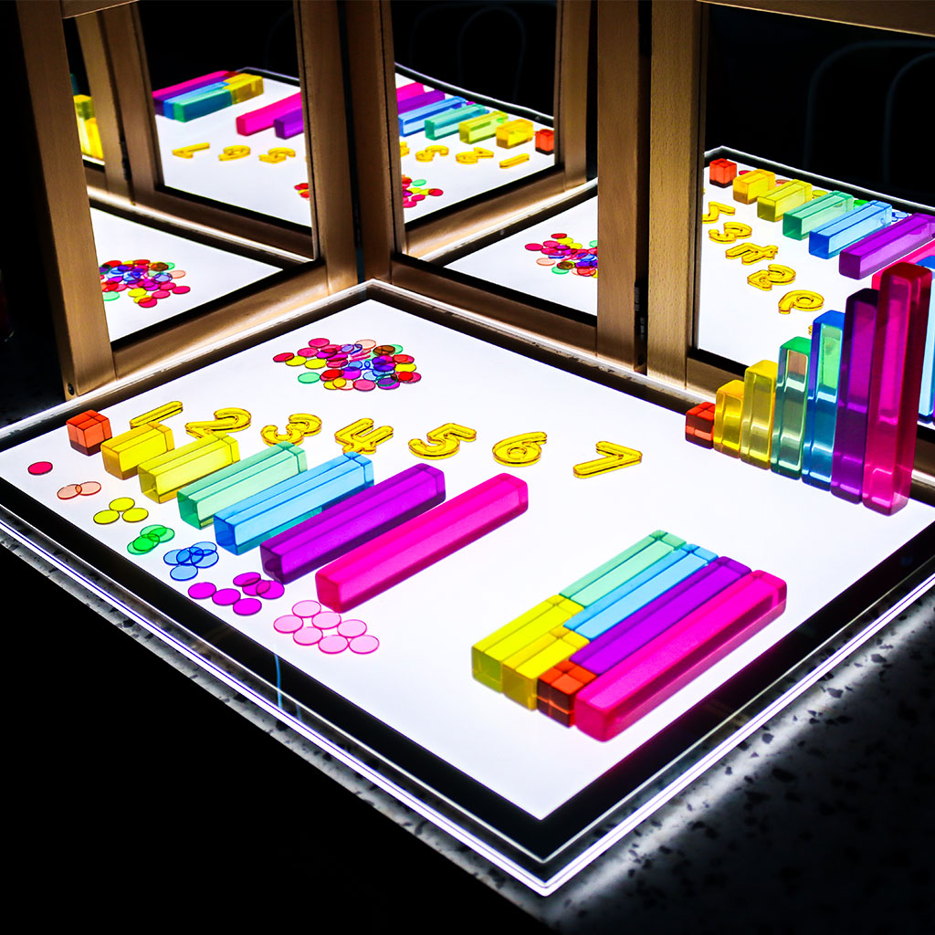 Our light panels will inspire children's explorations and encourage problem solving using inquiry, experimentation, hypothesising, researching and investigating. Using resources that inspire scientific investigations, the light panel will invite children to examine the physics of light, shadow, refraction and prisms.