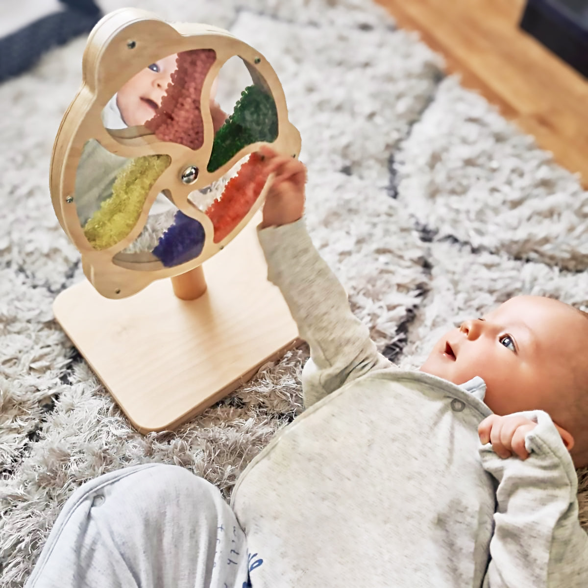 A brilliant multi-sensory resource which builds nerve connections in the brain’s pathways during play. This beautifully crafted sensory resource has been thoughtfully crafted to maximise a crucial time in a child’s development. Encourages eye tracking, hand-eye coordination and gross motor skill development.