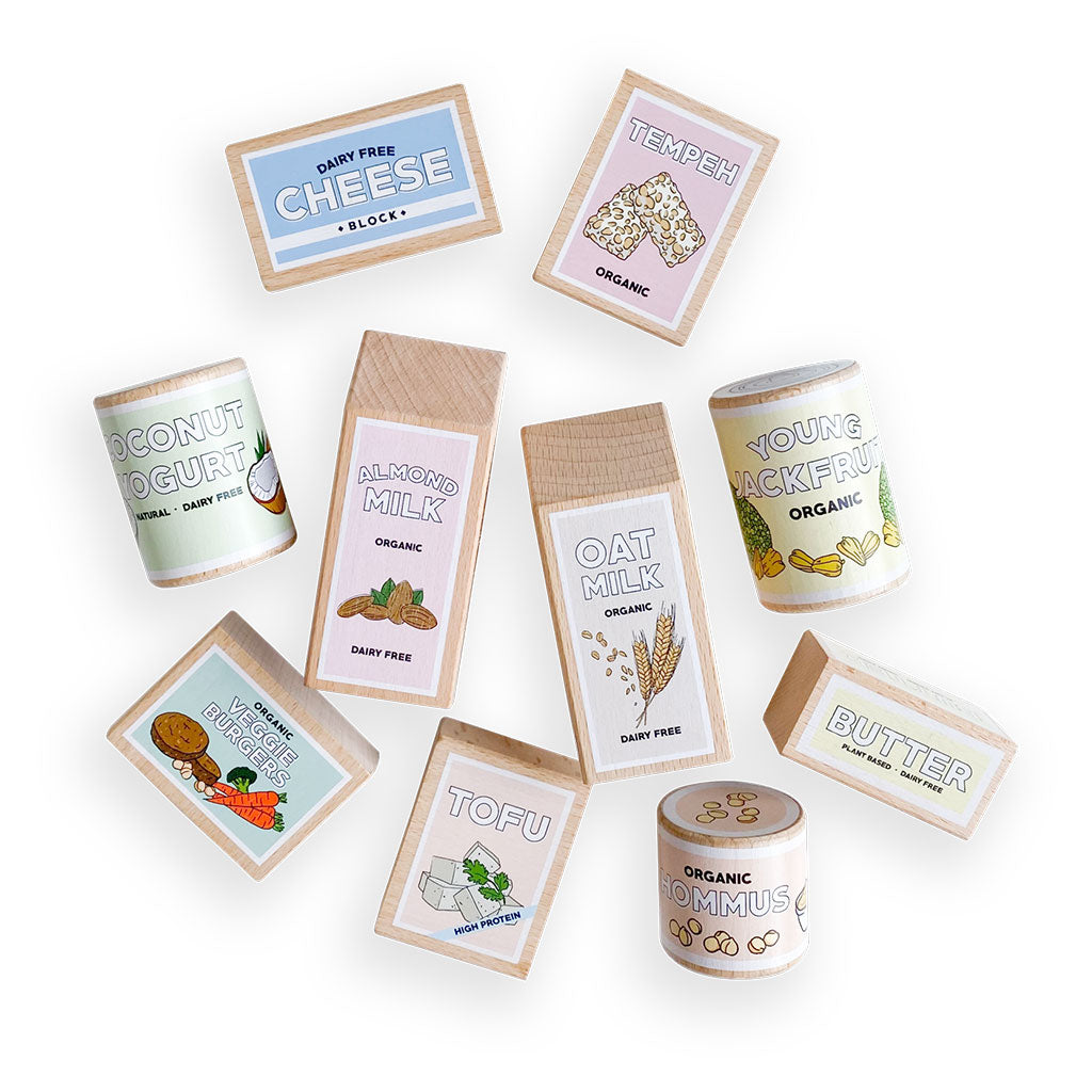 This 10 Piece Vegan Play Food Set contains all the vegan, dairy free, plant-based essentials for inclusive kitchen play. Designed to be an inclusive addition to kitchen play, this set invites children to learn the importance of accepting others’ dietary needs and choices and to cook with kindness.
