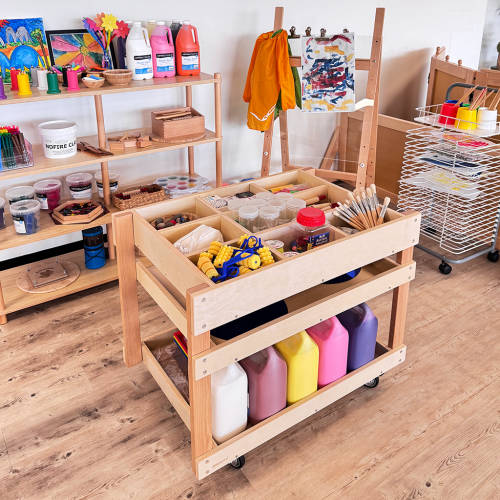 - This versatile Art and Craft Trolley is the perfect addition to your creative art space. Designed at the ideal height to promote independence, it allows children the ability to help themselves to the resources on the trolley.