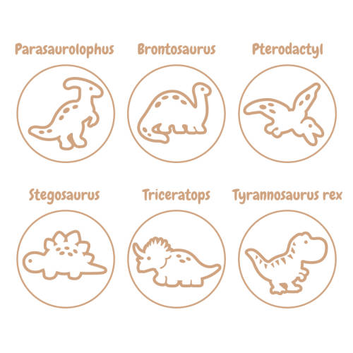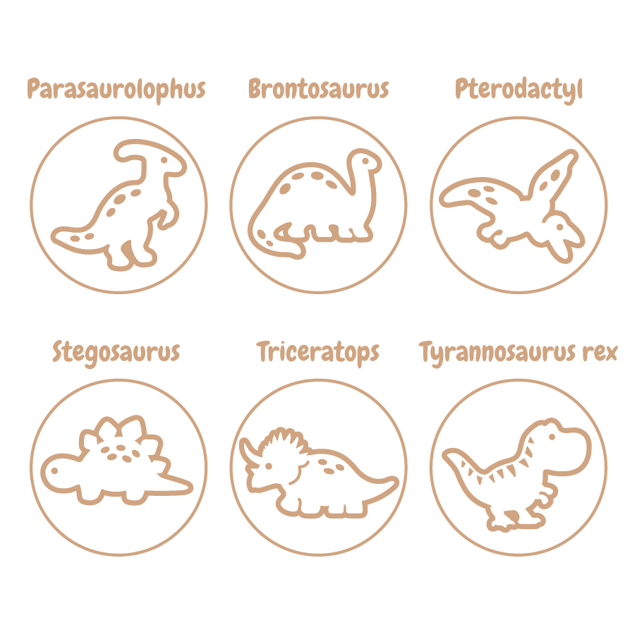 Create unique patterns and designs, encourage story time or use these stamps as part of an educational lesson on prehistoric life. This set features 6 dinosaurs including a Tyrannosaurus rex, Stegosaurus, Brontosaurus, Parasaurolophus, Triceratops and Pterodactyl.