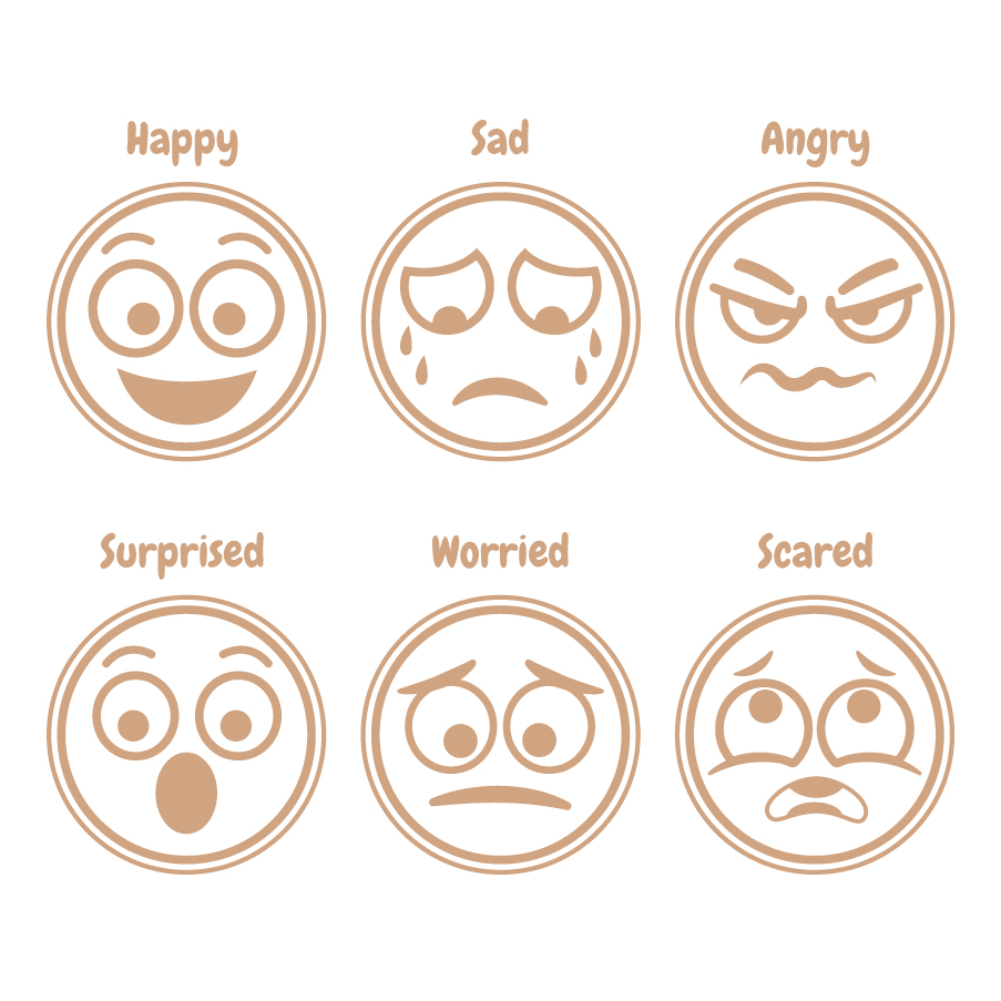 Create unique patterns and designs, encourage story time or use these stamps as part of an educational lesson on emotions. This set features 6 facial expressions including happy, sad, angry, surprised, worried and scared.
