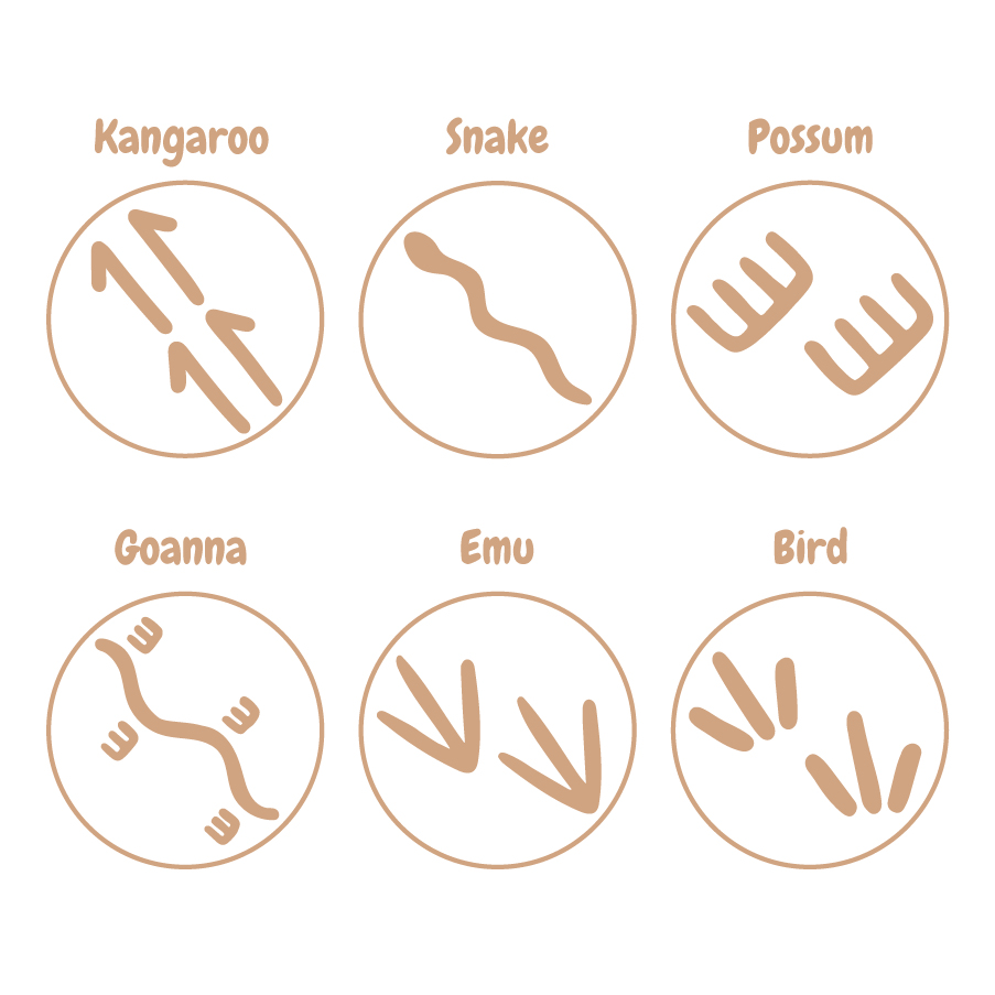 Create unique patterns and designs, encourage story time or use these stamps as part of an educational lesson on Indigenous Australian culture. This set features 6 Indigenous animal track symbols including kangaroo, snake, possum, goanna, emu and bird tracks.