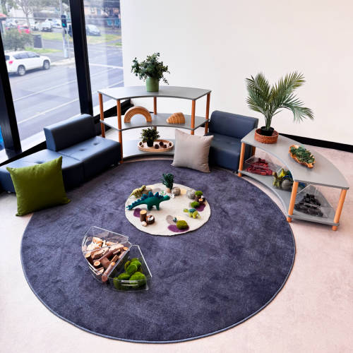 Perfectly suited for book corners, quiet space, group time, or dramatic play areas, this high-quality indoor rug is made from durable nylon with a non-slip action back for added safety. Stain-resistant and full-overlocking with no-pull edges, this carpet can withstand the rigours of classroom environments. Elevate your space with comfort and style, where little ones can happily play, sit, and enjoy.